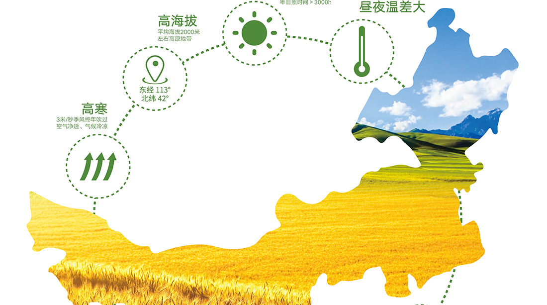 內(nèi)蒙古,世界裸燕麥起源地之一;陰山源生燕麥在初出生滿足生長(zhǎng)規(guī)律一切所需,高寒、高海拔、日照充足;遵循自然法則,靠天滋養(yǎng),自然生長(zhǎng);