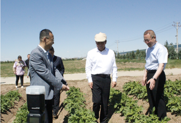 在試驗(yàn)田前,冀福善向段志強(qiáng)一行介紹,公司為科學(xué)種植,合理輪茬,從2015年開始進(jìn)入燕麥產(chǎn)業(yè),實(shí)施“馬鈴薯+燕麥”雙輪驅(qū)動(dòng)發(fā)展戰(zhàn)略,在察右中旗成立子公司——內(nèi)蒙古陰山優(yōu)麥?zhǔn)称酚邢薰?。目前,陰山?yōu)麥已完成投資2.4億元,年產(chǎn)2萬噸燕麥香米、2萬噸燕麥片、2000萬支燕麥杯、6000噸燕麥粉(莜面)和2萬噸藜麥米加工生產(chǎn)線已建成并投入使用,陰山優(yōu)麥?zhǔn)恰白灾螀^(qū)農(nóng)業(yè)產(chǎn)業(yè)化重點(diǎn)龍頭企業(yè)”、“自治區(qū)扶貧龍頭企業(yè)”。同時(shí),公司依托自身在加工薯種植管理技術(shù)、產(chǎn)品質(zhì)量、倉儲(chǔ)能力等方面的優(yōu)勢,于2019年初在察右中旗成立子公司——內(nèi)蒙古蒙薯食品科技有限公司,計(jì)劃投資1.5億元,建設(shè)“年產(chǎn)8000噸低溫油炸薯?xiàng)l及2000噸果蔬脆片加工項(xiàng)目”,全力打造烏蘭察布市地標(biāo)性產(chǎn)品,創(chuàng)建全國大的低溫油炸薯?xiàng)l、果蔬脆片深加工企業(yè),已于今年投產(chǎn)。