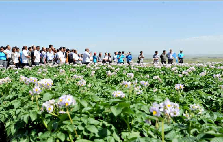 馬鈴薯專家和種植大戶在研究院試驗(yàn)田參觀