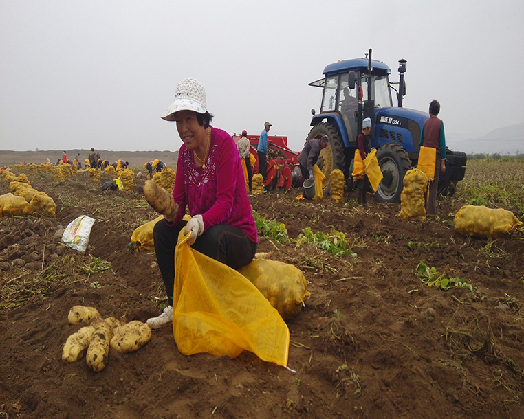 筆者隨之對正在揀馬鈴薯的農民進行了采訪,她說:“今年大土城農場的馬鈴薯長勢特別好,個頭大,質量好,定能賣個好價錢,一年辛苦總算沒白付出?!痹谒樕涎笠缰男θ菘?,是滿足的,幸福的。