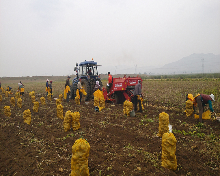 “大土城農場今年種植馬鈴薯2000畝,品種涉及費烏瑞它、克新一號與冀張薯,預估產量5400多噸,全部用作種薯。公司給配置了先進的聯(lián)合收獲機,正常情況每天能收獲100—120畝,預計20天左右就可全部收完” ???著一粒粒被堆放在田地里的馬鈴薯,聞著空氣中彌漫著沁人心脾的薯香,農場經理楊巨才得意的向我們表達他內心的喜悅。他還悄悄告訴我們:“今年公司政策特別 好,下派的協(xié)調員素質也很高,農場給他們配置了具有標志性的金黃熒光色衣服,農民工在遇到問題時第一時間就能找到他們,及時幫助解決困難,大大提高了收獲 效率,保證了收獲質量?!?br/> 經歷了一個夏天的洗禮和積蓄,吸盡日月精華的民豐馬鈴薯個頭十足、質量向好。據(jù)公司總部秋收統(tǒng)計員小董介紹,截止11日中午,公司馬鈴薯收獲面積達1435畝。在天氣良好的狀態(tài)下,預估10月10日前公司馬鈴薯收獲工作將全部結束,民豐薯業(yè)公司將迎來又一個豐收之年。