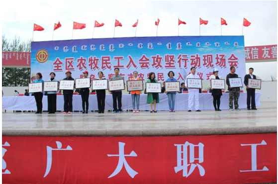 6月14日,全區(qū)農(nóng)牧民工入會攻堅行動現(xiàn)場會暨烏蘭察布市農(nóng)牧民工入會儀式在我市舉行。我公司組織30人的方隊參加了入會儀式。期間,自治區(qū)人大常委會副主任、總工會主席杭桂林,自治區(qū)總工會黨組書記、副主席崔明龍,自治區(qū)總工會副主席王麗紅,我市領(lǐng)導(dǎo)張琛、李建平、楊國文、王增強、王國相、于生龍,和各盟市工會分管主席、主管部門部長,各盟市黨委政府所在地的區(qū)(市、旗)總工會主席,各自治區(qū)產(chǎn)業(yè)工會負(fù)責(zé)人,自治區(qū)直屬機關(guān)工會工委負(fù)責(zé)人,區(qū)總相關(guān)部門負(fù)責(zé)人,市各旗縣市區(qū)工會負(fù)責(zé)人及部分市直基層工會負(fù)責(zé)人100余人來我公司進(jìn)行了實地觀摩考察。