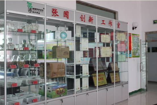 創(chuàng)新工作室建立在馬鈴薯研究院,以自治區(qū)勞動模范總經(jīng)理張國命名。工作室設(shè)立了成果展示柜,集中展示了工作室成立以來總經(jīng)理張國和我公司在馬鈴薯領(lǐng)域科研發(fā)展領(lǐng)域方面取得的創(chuàng)新成果和獲得的榮譽(yù)。工作室組織機(jī)構(gòu)、工作計劃、目標(biāo)、內(nèi)容、簡介、科研課題項目管理制度、管理辦法全部上墻,分別掛牌成立了實驗準(zhǔn)備室、病理鑒定室、理化分析室、育種資源室和脫毒培養(yǎng)室。