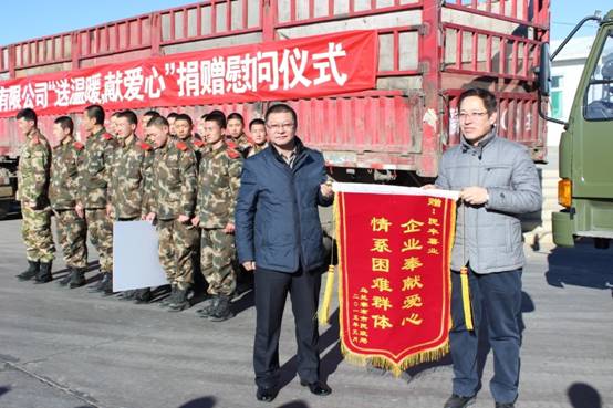 受捐單位市兒童福利院、市社會(huì)福利院、市精神康復(fù)醫(yī)院、察右前旗中心敬老院、卓資縣中心敬老院、武警支隊(duì)的領(lǐng)導(dǎo)參加了捐贈(zèng)儀式,市民政局領(lǐng)導(dǎo)、民豐薯業(yè)公司總經(jīng)理出席了捐贈(zèng)儀式。儀式上,民政局和武警支隊(duì)的領(lǐng)導(dǎo)分別向民豐薯業(yè)贈(zèng)送了錦旗。